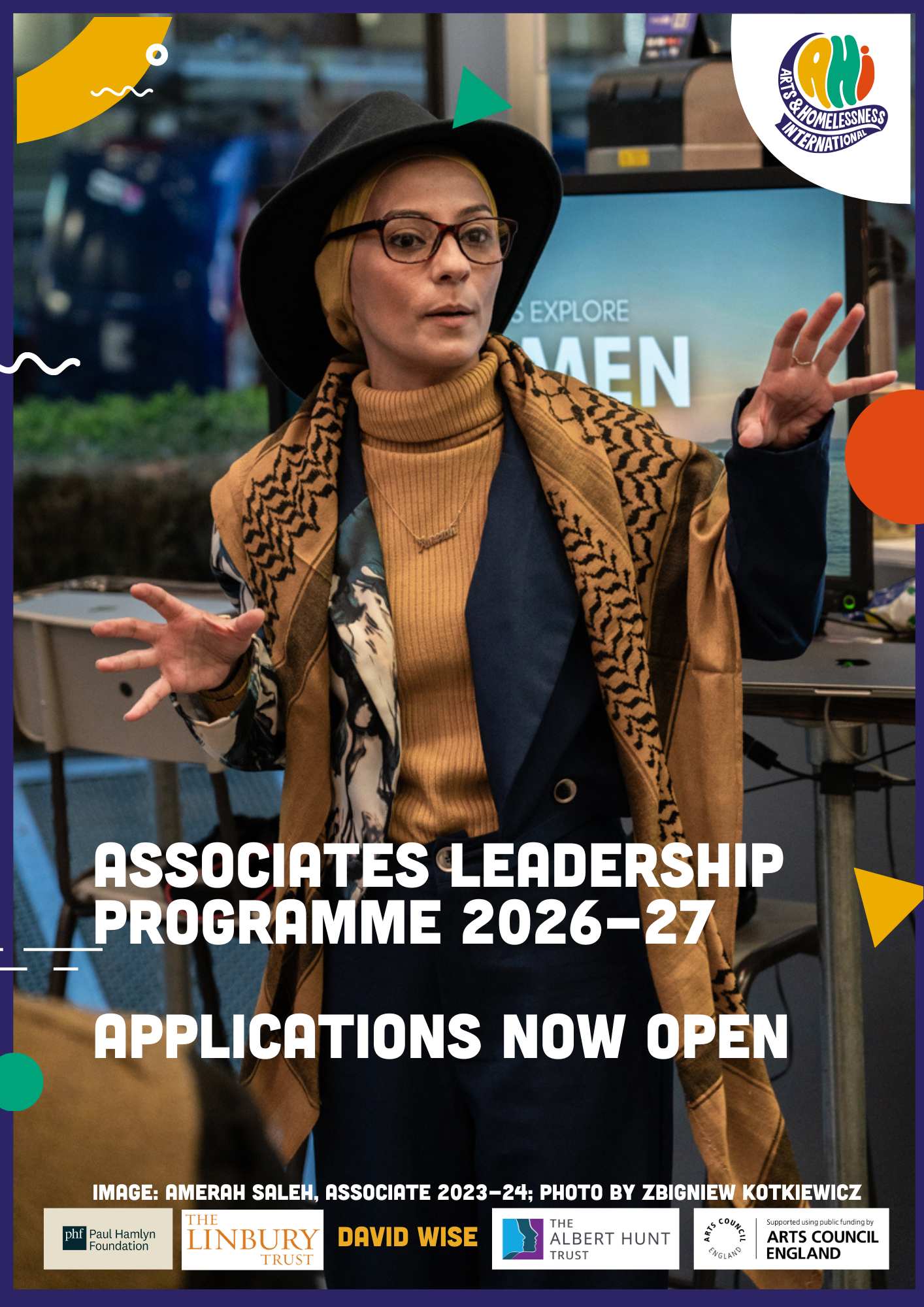 We are excited to announce that applications for the 2026-27 Associates Leadership Programme are now open – please download the Application Pack here: Associates 2026-27 Application Pack and there is also an audio version available (please email hello@artshomelessint.com)